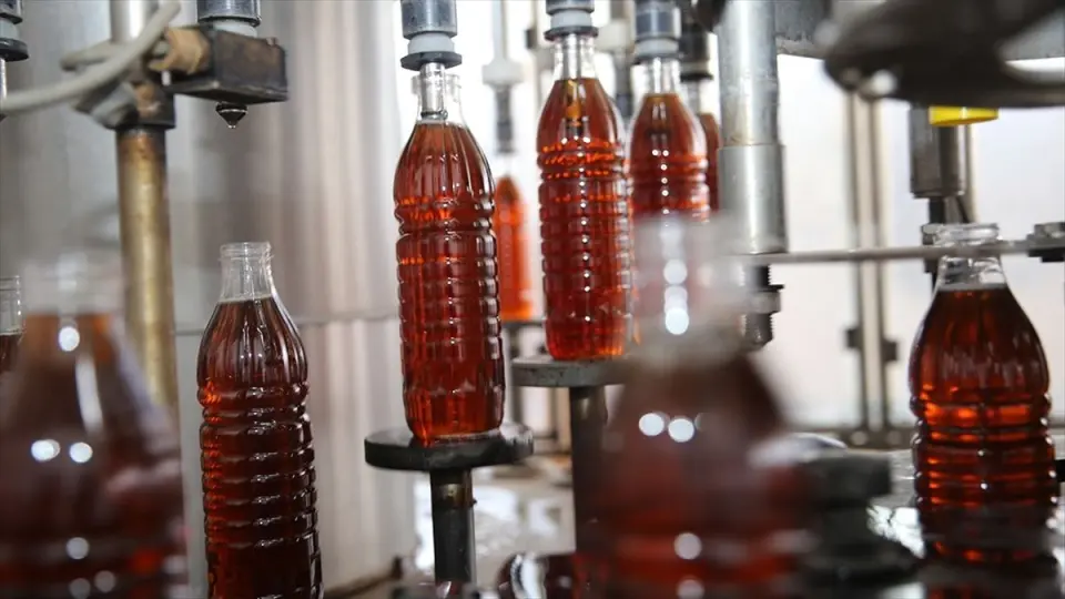 Haftalarca süren aşamanın ardından tamamen geleneksel yöntemlerle elde edilen sirke şişelenip paketleniyor.