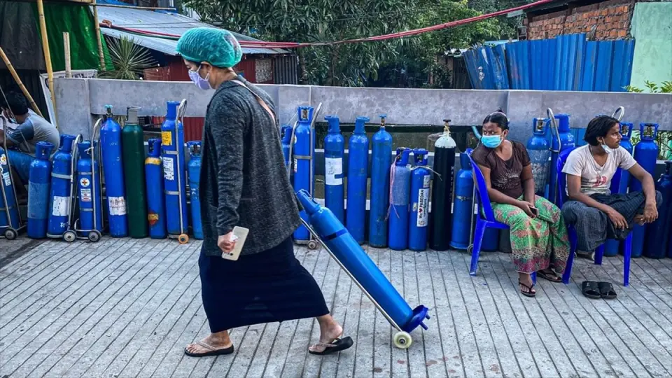 Myanmar'daki hastanelerde oksijen tüpü ihtiyacının artması üzerine askeri yönetim, oksijen tüplerinin lisans olmadan ithal edilmesine izin verdiklerini açıklamıştı.