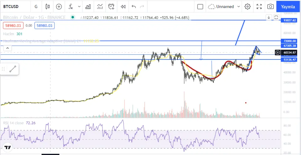 Bitcoin teknik analizi ve yorumu #BTC günlükte 58300$ test e...