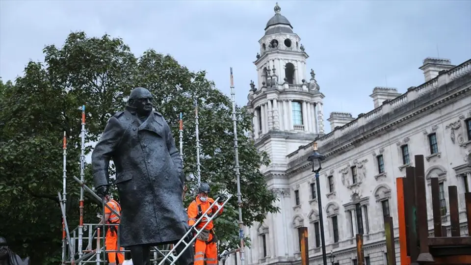 İngiltere'nin eski Başbakanı Winston Churchill'in Parlamento Meydanı'nda bulunan heykelini çevreleyen metal plakalar, akşam saatlerinde sökülmeye başlandı. Yaklaşık 4 saat süren çalışmanın ardından metal plakaların yanı sıra kurulan iskele de tamamen kaldırıldı. Irkçılık karşıtı göstericilerin "Churchill bir ırkçıydı" yazdığı heykelin kaidesi ise siyah bir brandayla kapatıldı. Daha önce temizlenmesine rağmen hala okunabilen yazının tamamen silineceği öğrenildi.