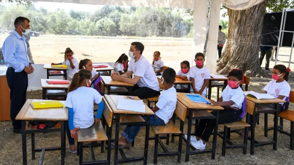 MEB, 'Telafide Ben de Varım' programı kapsamında Mobil Okullarla tarlalarda da eğitim veriyor