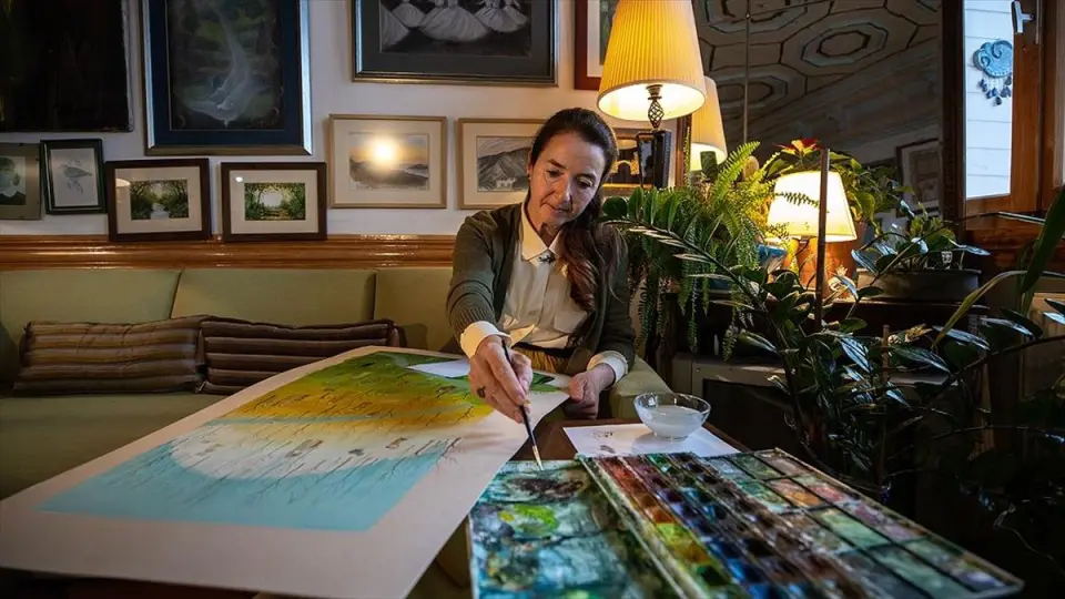 "Eğer iç ahenginize kavuşamamışsanız minyatür yapmanız çok zor"Gaye Özen, pandemi öncesi daha çok Küçüksu Kasrı'nda çalışmalarını yaptığını belirterek, "Sabah kalkıp bir atölyeye gider gibi, malzemelerimle birlikte Küçüksu Kasrı'na hiçbir düşünce taşımadan gidiyorum. Sonra o kağıda zemin atıyorum. O günkü ruh halime göre, o zemin sonrasında, doğayla temaşa halindeyken bir şekilde bir kompozisyon çıkıyor. Bu inanın bana da sürpriz oluyor. Ne yapacağınızı bilmiyorsunuz. Başlıyorsunuz, devam ediyorsunuz ve hiç planlamadığınız bir şekilde eseriniz bitebiliyor. Eseriniz size bir söz söylüyor. Sonra çok kısa da olsa her minyatürüme kısa bir metin yazıyorum. Yani her minyatürümün kendine ait bir hikayesi var." dedi.