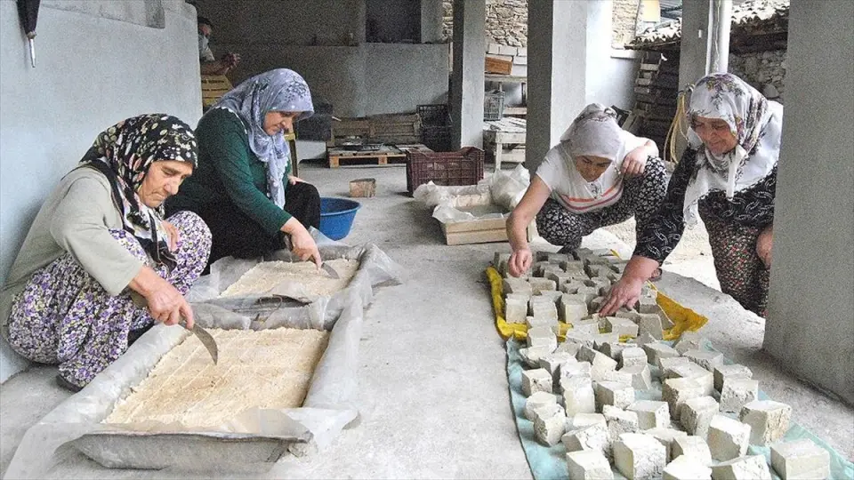 Zeytinyağından sabun yapmakta tecrübeli kadınlar, kantaronları sabuna dönüştürmek için kolları sıvadı. Odun ateşi yakarak kaynattıkları suya kantaron yağı ekleyen kadınlar, kazana ara ara kostik ilave etti.