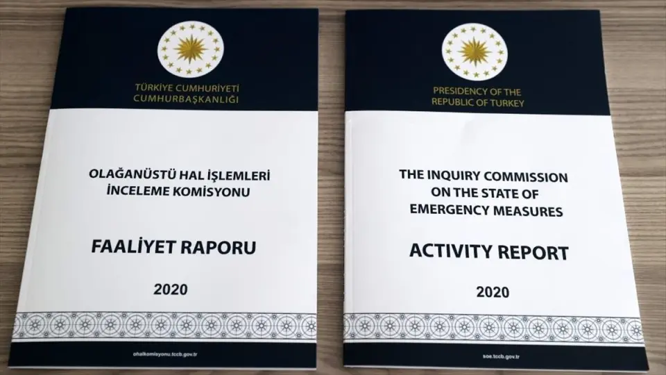 Türkçe ve İngilizce hazırlanan raporda, meslekten ihraç edilenler, bursu kesilen öğrenciler, rütbeleri alınan emekli güvenlik personeli, kapatılan kurum ile kuruluşlara ilişkin başvurulara bakmak üzere kurulan komisyonun Anayasa Mahkemesi ve Avrupa İnsan Hakları Mahkemesince (AİHM) etkili bir iç hukuk yolu olarak kabul edildiği vurgulandı.