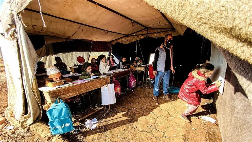 İdlib’in Kefer Aruk köyündeki Reyyan kampı sakinleri, çocukların eğitimden mahrum kalmaması için, çadırlarını hafta içi 4 saat boyunca öğrencilere veriyor.