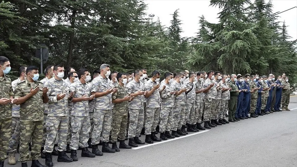 BAKÜ (AA) - Azerbaycan Savunma Bakanlığından yapılan açıklamaya göre, tatbikatın hava unsurlarının yer aldığı kısım olan "TurAz Kartalı 2020"ye katılan askerler için bayram...