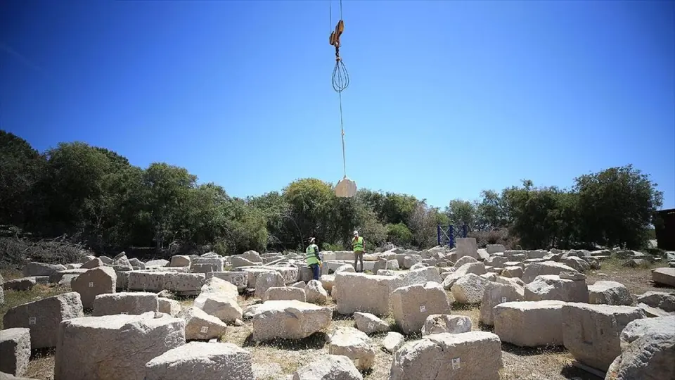 Patara'nın deniz feneri 'taş hastanesi'nde cerrah titizliğinde güçlendirilen kendi taşlarıyla yükseliyor