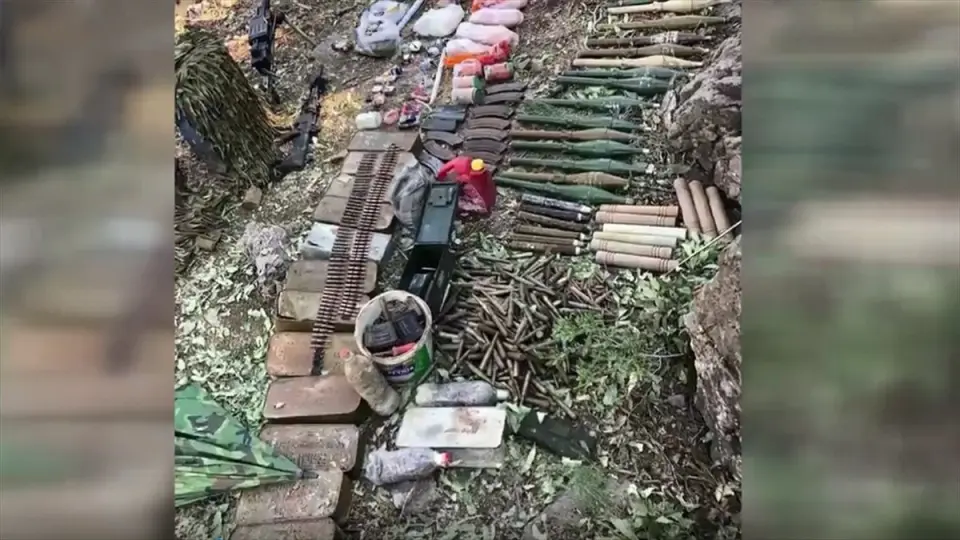 "Söz konusu tünelde icra edilen arama-tarama faaliyetleriyle, 1 M16A4 piyade tüfeği, 1 Doçka uçaksavar silahı ve 4 sandık mühimmatı, 28 anti-tank RPG 7 mühimmatı, 6 anti-personel RPG 7 mühimmatı, 50 M16 mühimmatı ve 4 şarjörü, 4 dolu kanas şarjörü, 5 sandık PKMS mühimmatı ve 1 PKMS dürbünü, 5 sandık AK-47 piyade tüfeği mühimmatı ve 13 dolu şarjörü, 10 el bombası, çok miktarda amonyum nitrat, 5 bin 700 elektrikli fünye, 6000 adet mekanik fünye, 9 alpha fire düzenek ve 2 ateşleme kumandası, 3 adet 5 litrelik, 2 adet 2,5 litrelik, 2 adet 2 litrelik bidonlara sıkılanmış EYP ana imla hakkı, çok miktarda pil ve pil bloğu, çok miktarda çıt çıt düzenek, 1 hilti, 2 baofeng walkie talkie, PTZ kamera, kamera izleme sistemi, termal şemsiye, keskin nişancı kıyafeti, gizleme ağı, 1 atış kulaklığı ve muhtelif yaşam malzemesi ele geçirildi. Tespit edilen malzemeler ve EYP'ler METİ timimiz tarafından yerinde imha edildi."