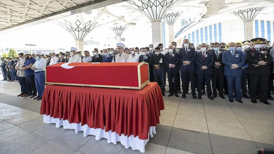 .w3-content { max-width: 100%; margin: auto;} .w3-tooltip, .w3-display-container {position: relative;} .w3-black, .w3-hover-black:hover { color: #fff!important; background-color: #000!important;} .w3-display-left { position: absolute; top: 50%; left: 0%; transform: translate(0%,-50%);-ms-transform: translate(-0%,-50%);} .w3-display-right { position: absolute; top: 50%; right: 0%; transform: translate(0%,-50%);-ms-transform: translate(0%,-50%);} .w3-btn, .w3-button {-webkit-touch-callout: none;-webkit-user-select: none; -khtml-user-select: none;-moz-user-select: none; -ms-user-select: none;user-select: none;} .w3-btn, .w3-button {border: none;display: inline-block;outline: 0;padding: 8px 16px;vertical-align: middle;overflow: hidden;text-decoration: none;color: inherit;background-color: inherit;text-align: center;cursor: pointer;white-space: nowrap;}❮❯Şehit Muhammed Öztürk son yolculuğuna uğurlandıAhmet Hamdi Akseki Camisi'nde öğle vakti kılınan cenaze namazına şehidin ailesi ve yakınlarının yanı sıra Cumhurbaşkanı Yardımcısı Fuat Oktay, CHP Genel Başkanı Kemal Kılıçdaroğlu, MHP Genel Başkanı Devlet Bahçeli, Adalet Bakanı Abdulhamit Gül, Milli Savunma Bakanı Hulusi Akar, Milli Eğitim Bakanı Mahmut Özer, Genelkurmay Başkanı Orgeneral Yaşar Güler, Kara Kuvvetleri Komutanı Orgeneral Musa Avsever, Hava Kuvvetleri Komutanı Orgeneral Hasan Küçükakyüz, Jandarma Genel Komutanı Orgeneral Arif Çetin, Ankara Valisi Vasip Şahin, Ankara Emniyet Müdürü Servet Yılmaz, AK Parti Genel Sekreteri Fatih Şahin ile Çankaya Kaymakamı Mete Buhara katıldı.