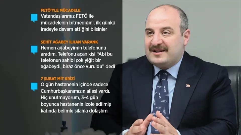 ANKARA (AA) - Sanayi ve Teknoloji Bakanı Varank, Sabah Gazetesi'ne verdiği röportajda, Fetullahçı Terör Örgütü (FETÖ) ile mücadeleyi ve 15 Temmuz darbe girişiminde İstanbul Büyükşehir Belediyesi önünde şehit olan ağabeyi Prof. Dr. İlhan Varank'ı anlattı.
