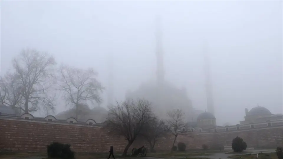 Kentin simgesi Selimiye Camisi sis altında gözden kayboldu. Tarihi köprüler siste güzel görüntüler oluşturdu.