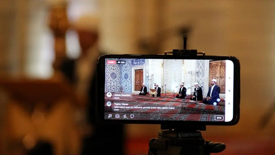 EDİRNE (AA) - Yeni tip koronavirüs (Kovid-19) tedbirleri kapsamında vatandaşların camilerde ibadete ara vermesi nedeniyle, Selimiye Camisi'ndeki Kadir Gecesi programı sosyal medya üzerinden canlı yayınlandı.