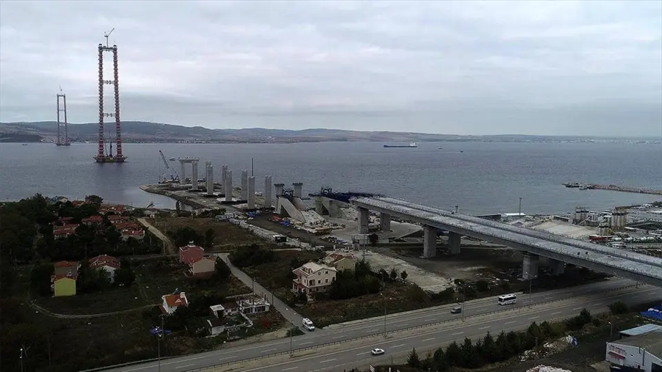 Hizmete girdiğinde "dünyanın en büyük orta açıklıklı asma köprüsü" unvanını alacak, renkleri, figürleri ve diğer özellikleriyle özgün mimariye sahip 1915 Çanakkale Köprüsü'nün inşası hızla sürüyor.