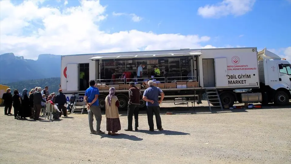 İhtiyaç sahiplerini tıra davet ettiklerini dile getiren Çiftçi, "Herkes ihtiyacı olan giysisini alıyor. Diğer gıda ihtiyacı daha önce de zaten temin edildi. Allah devletimize güç kuvvet versin." diye konuştu.