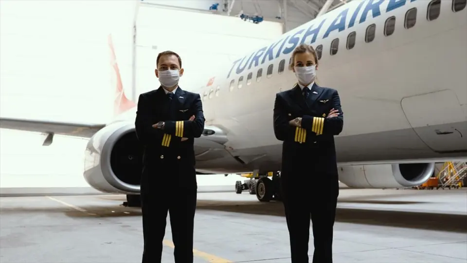 Otobüsle aprona gelen THY kaptan pilotu Selin Sevimli, ikinci pilot Zafer Doğukan Demir ile kabin ekipleri uçağın önünde hatıra fotoğrafı çektirdi.