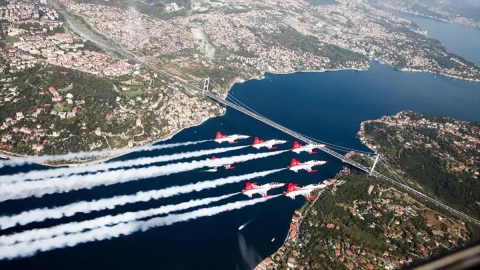 Türkiye ve Azerbaycan uçakları İstanbul Boğazı'nda selamlama uçuşu yaptı