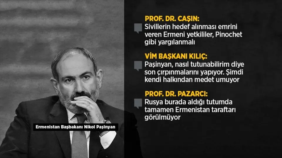 Süreçte bunların hiçbirinin tutarlı ve doğru olmadığının açığa çıktığını aktaran Kılıç, "Dolayısıyla bu Paşinyan'ın kendi iç kamuoyunda da çok zor duruma düşmesine neden oldu. Paşinyan açıkçası gidici. Nasıl tutunabilirim diye son çırpınmalarını yapıyor. Şimdi kendi halkından medet umuyor. 'Eğer bir şey yapabiliyorsanız hadi buyrun siz yapın' demeye getiriyor." değerlendirmesinde bulundu.