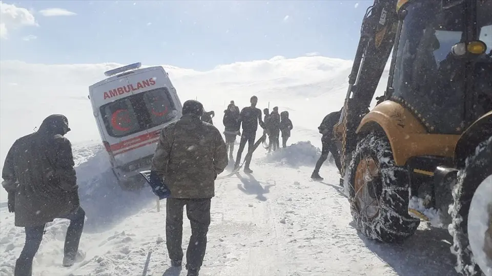Yoğun kar ve tipiye rağmen yolu açan ekipler, sağlık görevlilerinin hastaya ulaşarak tedavisini yapmalarını sağladı.