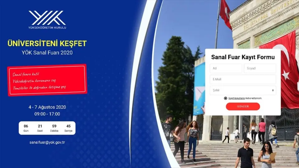 YÖK'ten yapılan açıklamaya göre, "Üniversiteni Keşfet YÖK Sanal Fuarı 2020" adıyla düzenlenen etkinlikle öğrencilere, yeni tip koronavirüs (Kovid-19) salgını nedeniyle olası riskleri en aza indirgeyerek tercih edeceği üniversiteyi ve programı dijital ortamda yakından tanıtmak hedefleniyor.