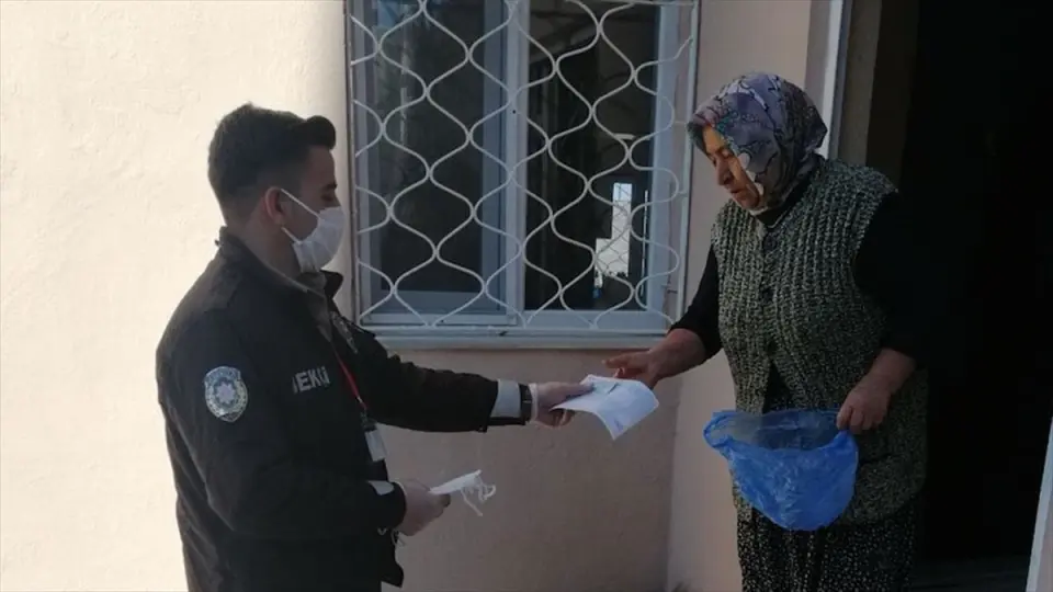 Bunun üzerine çarşı ve mahalle bekçileri, yeni tip koronavirüs (Kovid-19) tedbirleri kapsamında sokağa çıkmaları kısıtlanan Akyol'u evinde ziyaret etti.