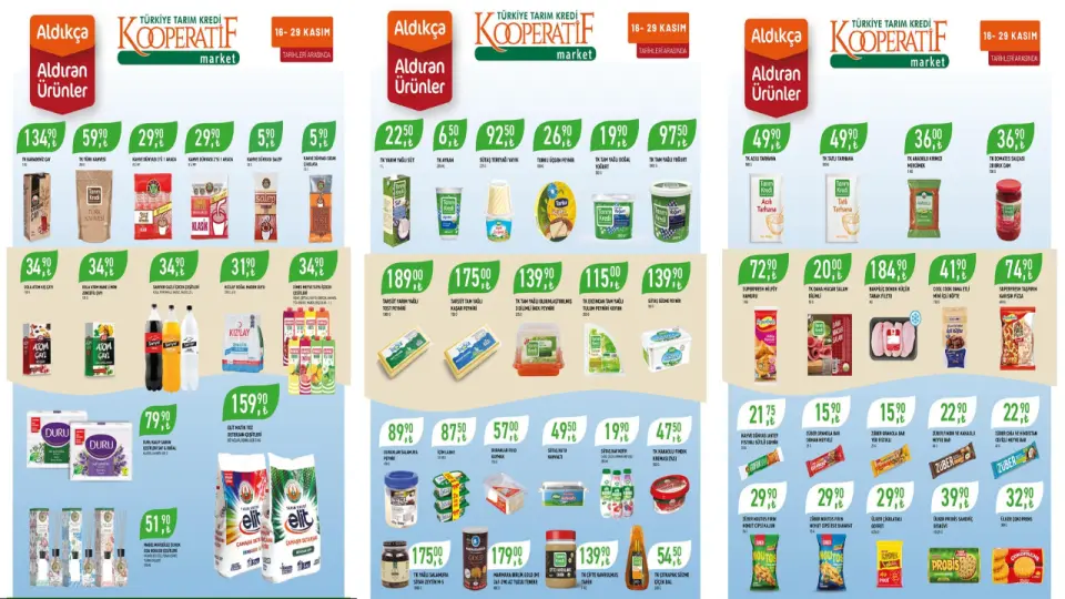 Tarım Kredi Kooperatif marketlerinde 17-29 Kasım tarihleri arasında büyük indirim fırsatları! Gıda ve temizlik ürünlerinde kaçırılmayacak fiyatlar sizleri bekliyor.