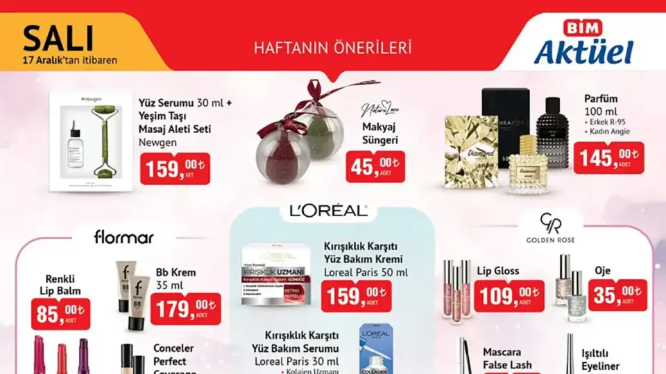 BİM'in 17 Aralık'tan itibaren sunacağı aktüel ürünler listesi açıklandı. Kozmetikten gıda ürünlerine kadar birçok kategoride büyük indirimler sizi bekliyor.