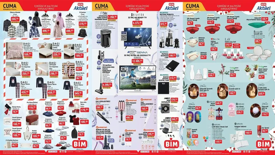 BİM, 20 Aralık itibarıyla geçerli olacak yeni kataloğunda ev eşyasından elektroniğe kadar pek çok üründe büyük indirimler sunuyor.