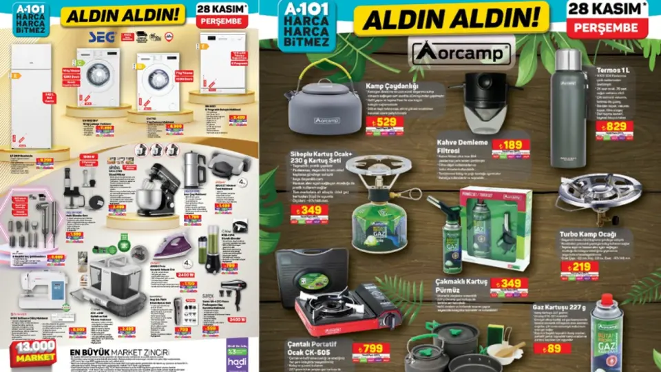 A101’in merakla beklenen 28 Kasım Perşembe kataloğu nihayet açıklandı! Ev teknolojisinden mutfak gereçlerine, gıdadan kamp ekipmanlarına kadar sınırları zorlayan fırsatlar bu hafta raflarda yerini alacak. İndirimde neler mi var? İşte detaylar…