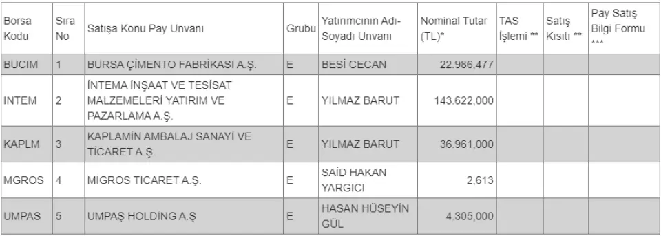 BUCIM, INTEM, KAPLM, MGROS, UMPAS