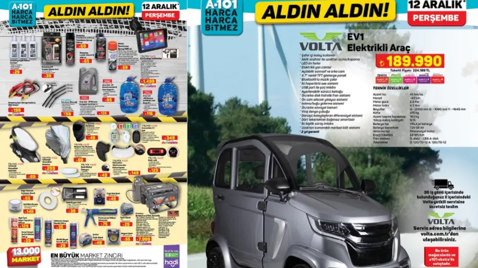 - Volta EV1 Elektrikli Araç: Çevreci bir ulaşım deneyimi için özel fiyat 189.990 TL.