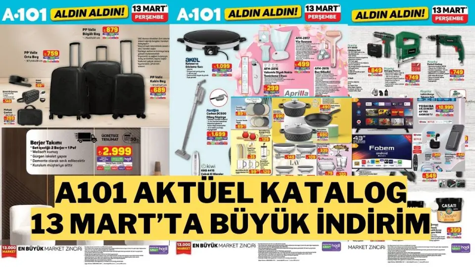 Perakende devi A101, 13 Mart itibariyle birbirinden çekici indirimlerle dolu aktüel ürünler kataloğunu yayımladı. Elektronik, beyaz eşya, mutfak gereçleri, oto bakım, kişisel bakım ve oyuncak gibi farklı kategorilerde genç yaşlı herkesin ilgisini çekecek fırsatlar sunuluyor.