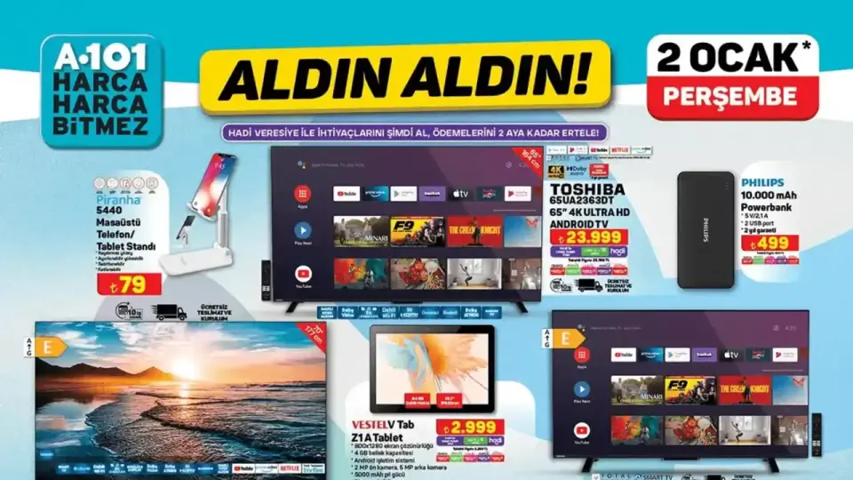 A101, 2 Ocak’tan itibaren geçerli olan bu kataloğu ile tüketicilere ekonomik alışveriş imkanı sunarken, kaliteli ürünleri de uygun fiyatlarla satın alabilmenize olanak tanıyor. Bu fırsatları kaçırmamak için mağazaları ziyaret etmeyi unutmayın!