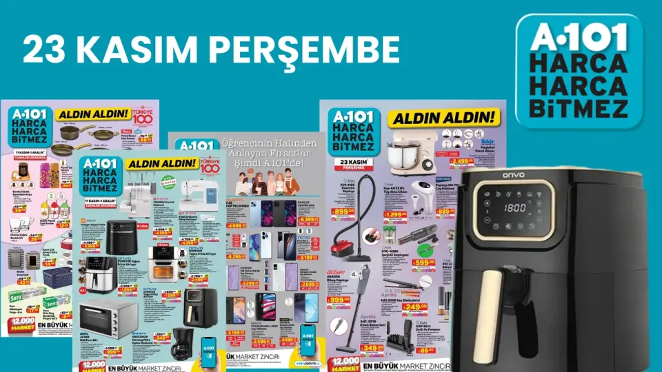 Merakla beklenen A101 23 - 25 Kasım 2024 aktüel ürünler kataloğu nihayet açıklandı! Bu hafta yine çarpıcı fırsatlarla dolu olan A101, evinizin tüm ihtiyaçlarını karşılayacak birbirinden farklı ürünleri, şaşırtıcı fiyatlarla sunuyor. Elektronikten mutfak gereçlerine, tekstilden mobilyaya kadar uzanan geniş ürün yelpazesi, her bütçeye hitap ediyor. Peki, bu hafta hangi ürünler öne çıkıyor?