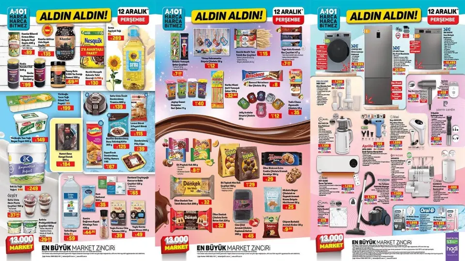A101’in bu haftaki katalogu, her ihtiyaca hitap eden zengin ürün yelpazesiyle dikkat çekiyor. Siz de 12 Aralık’tan itibaren bu ürünlere A101 mağazalarından veya online olarak ulaşabilirsiniz. Özellikle giyimden beyaz eşyaya kadar geniş fırsatları kaçırmamak için erkenden harekete geçin.