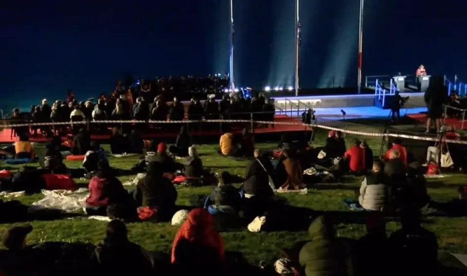 Katılımcılar, uyku tulumları ve battaniyeler içinde, tören alanına kurulan dev ekrandan Çanakkale Savaşları'na ilişkin belgesel, film, röportaj ve bazı kentlerdeki Anzak Günü törenlerini izleyerek "Şafak Ayini"nin başlamasını bekledi.