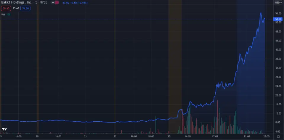 Haber, BKKT için fiyat patlamasına neden oldu ve hisse senedi 22 Ekim Cuma gününün kapanış fiyatı olan 9.15$'dan başlayarak %50'den fazla yükseldi ve 25 Ekim Pazartesi gününü 30.60$'da kapatarak %120'lik bir artış daha yaptı. .