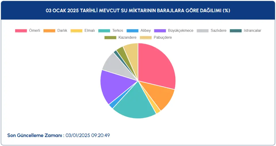 03 OCAK 2025 TARİHLİ MEVCUT SU MİKTARININ BARAJLARA GÖRE DAĞILIMI (%)