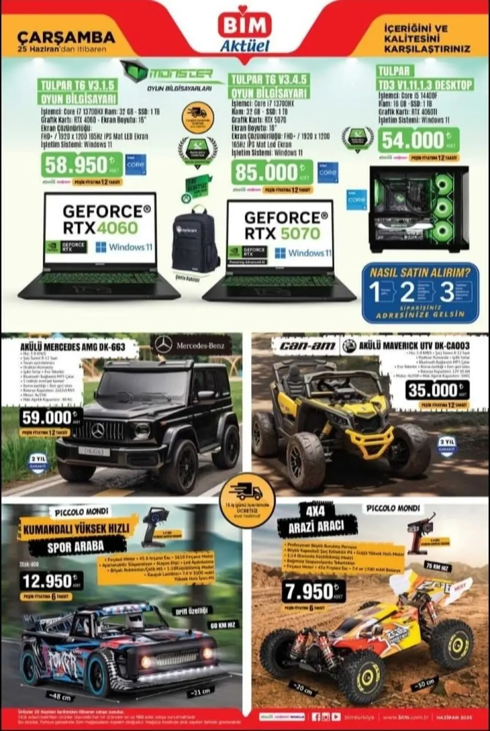 BİM marketler zinciri, 25 Haziran 2025 Çarşamba günü satışa sunulacak aktüel ürün kataloğunu duyurdu. Listede yüksek donanımlı masaüstü bilgisayardan 4x4 arazi aracına kadar birçok ürün yer alıyor. Kampanyalı fiyatlar sınırlı stoklarla geçerli olacak.