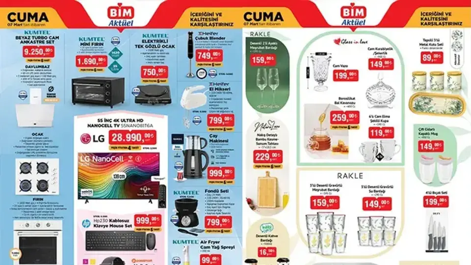 Bim, 7 Mart 2025 Cuma gününe özel aktüel ürünler kataloğunu yayımladı. Bu haftaki indirimler arasında uygun fiyatlı motosikletlerden mutfak gereçlerine kadar genşi bir yelpaze yer alıyor.