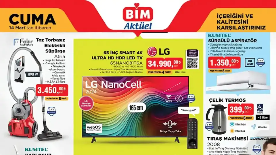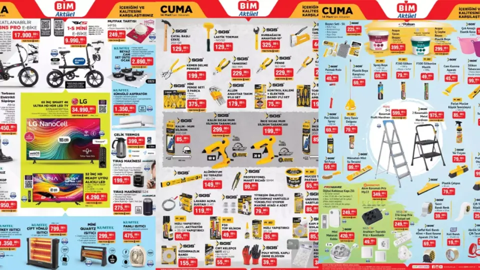 BİM, 14 Mart 2025 aktüel kataloğuyla mutfak ürünlerinden elektronik cihazlara, kişisel bakım ürünlerinden hırdavat malzemelerine kadar geniş bir yelpazede fırsatlar sunuyor.