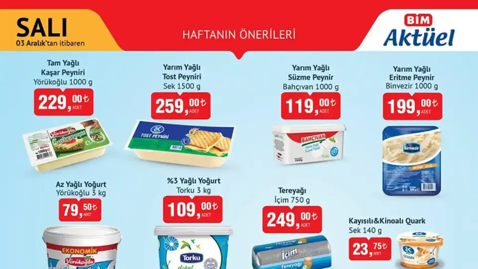Aralık ayına iddialı bir başlangıç yapan BİM, yeni aktüel kataloğuyla alışveriş tutkunlarının karşısında! 3-4 Aralık 2024 tarihlerinde geçerli olacak bu katalog, hem gıda hem de elektronik ürünlerde devrim niteliğinde fırsatlar sunuyor. İhtiyaç listesindeki ürünleri avantajlı fiyatlarla almayı planlayanlar için kaçırılmayacak bir fırsat olan bu kampanyada, tüm detayları sizler için derledik. Hangi ürün ne kadar, neler dikkat çekiyor? Haydi, bu haftanın dikkat çeken ürünlerine göz atalım!