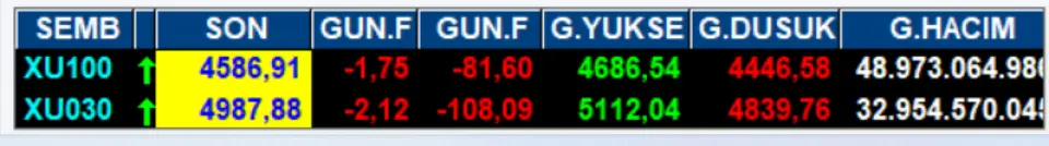 Açılışta BIST 100 endeksi, önceki kapanışında rekor hacimle kapatırken bugün gelen sert satışlarla %4.65 değer kaybetti. Bir çok büyük hisse taban oldu.