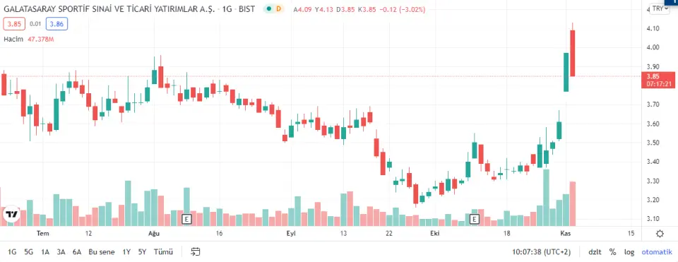 Galatasaray Spor Kulübü hisseleri haftanın ilk işlem gününde hareketli bir şekilde başladı ve seansı tavan yaparak kapattı.