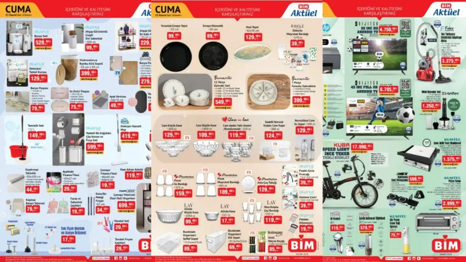Bu hafta BİM’in aktüel kataloğunda dikkat çeken sıra dışı bir ürün var: Verandalı 8500 Flat Tiny House! Bu kompakt ev, minimalist yaşam hayali kuranlar için sadece 599.000 TL’ye satışta. Çevre dostu bir ulaşım seçeneği sunan İnce Teker Elektrikli Bisiklet de yalnızca 17.990 TL.
