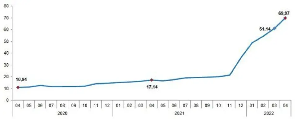 TÜFE yıllık değişim oranları (%), Nisan 2022:
