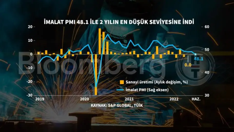 İstanbul Sanayi Odası (İSO) verilerine göre; Türkiye imalat sanayi satın alma yöneticileri endeksi (PMI), haziranda 48,1'e geriledi. Bu da sektördeki daralmanın düşük talebe paralel olarak devam ettiğini gösterdi.