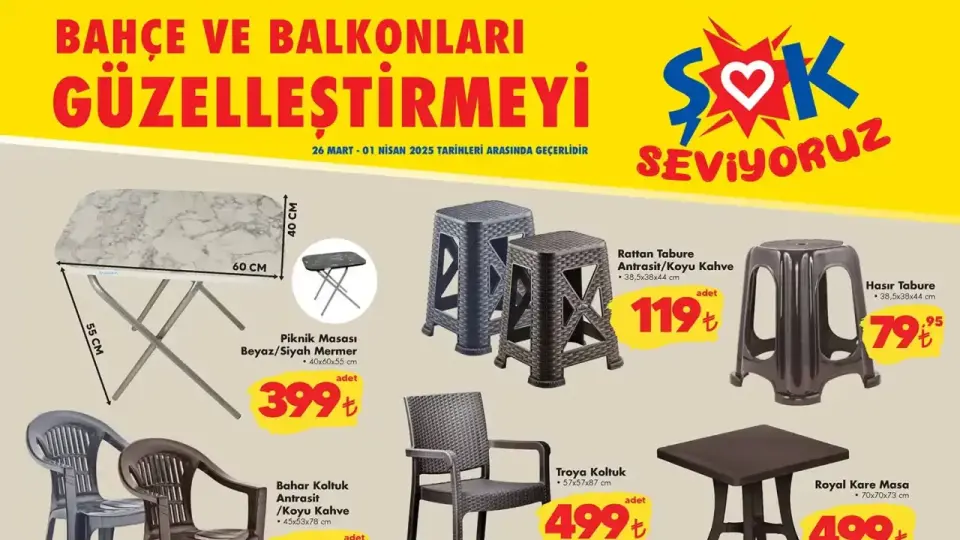 Bahar indirimleri ŞOK'ta! Bahçe mobilyalarından hijyen ürünlerine, 26 Mart - 2 Nisan 2025 ŞOK Aktüel kataloğundaki fırsatları kaçırmayın!