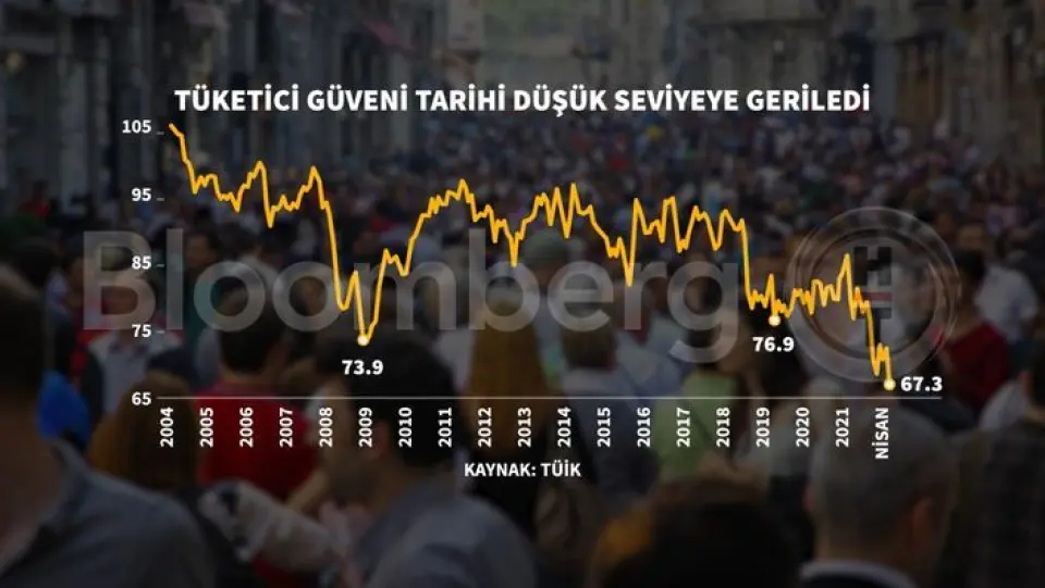 Türkiye İstatistik Kurumu (TÜİK) Nisan ayı tüketici güven endeksini yayımladı. Endeks 67,3 değeriyle veri setinin en düşük seviyesini gördü.