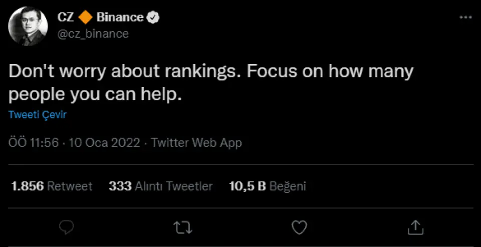 5 yıl önce kurulan ancak sektöre adım attığı andan itibaren lider kripto para borsası olmayı başaran Binance'in ünlü CEO'su Changpeng Zhao da artık dünyanın en zengin kişilerinden biri oldu. ABD medyasından Bloomberg, "CZ" olarak da bilinen Binance kurucusunun, artık Elon Musk, Bill Gates ve Jeff Bezos gibi dolar milyarderleriyle aynı seviyede olduğunu belirtti.