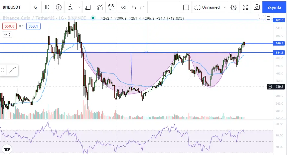 Binance Coin(BNB) tekrardan zirve seviyelerine mi ulaşıyor? Ünlü analistimiz kryptoturk‘ün grafik yorumlarıyla Binance Coin (BNB) nasıl bir yol izleyecek?